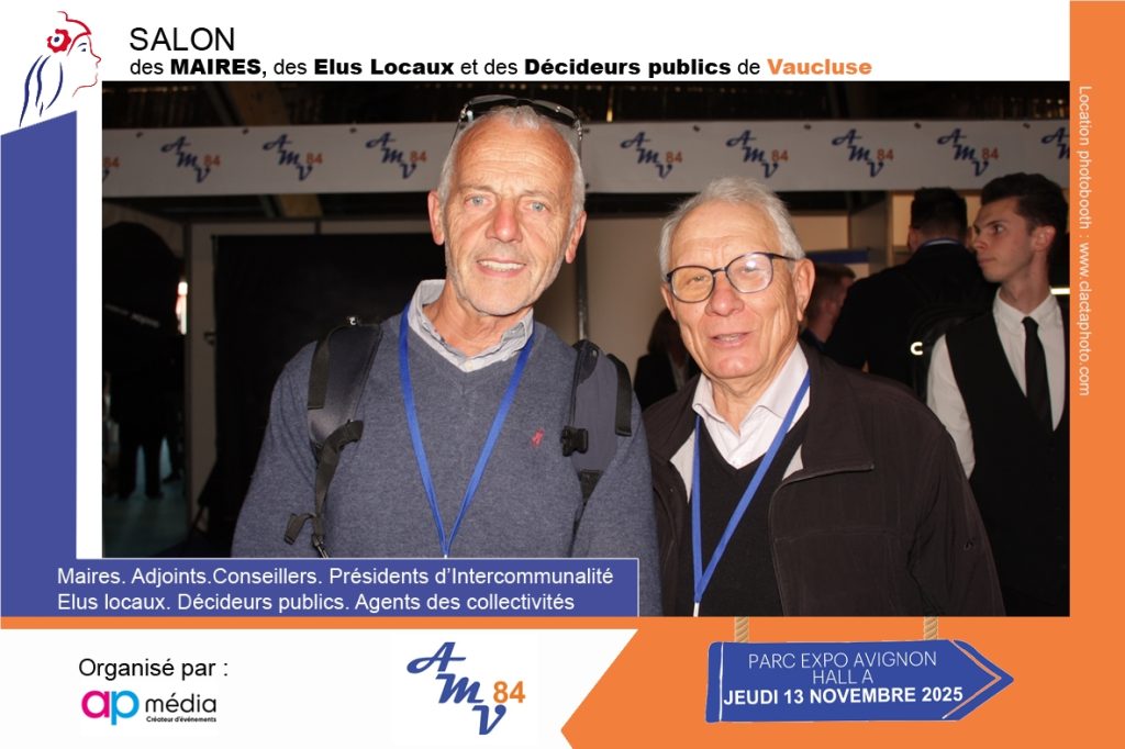 Régis AUDIBERT et Alain GUEYDON, se sont rendus ce Jeudi 13 Novembre 2025 au Parc des expositions d’Avignon à l’occasion du salon annuel des Maires de Vaucluse, des Elus locaux et Décideurs publics. Ils y étaient invités en tant que conseillers municipaux / conseiller communautaire et étaient les seuls représentants de Cucuron. Il s’agit du rendez-vous annuel de rencontre et de réflexion des acteurs locaux.