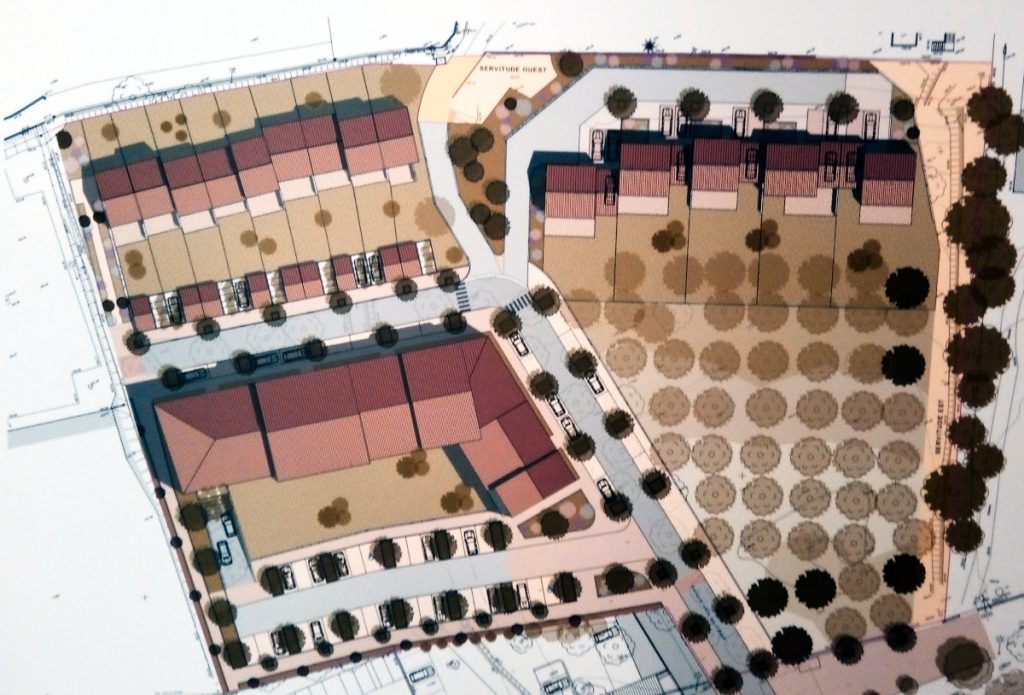 Le reste étant devenu un projet immobilier (dixit), un lotissement avec 5 terrains à construire, 9 maisons individuelles accolées et  22 appartements en collectif.